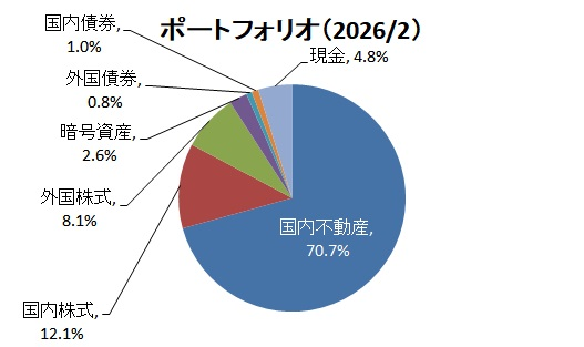 2025年12月末は71%のウェイトでしたが、2026年2月末は70%となっています。国内不動産はウェイトを下げていきたい資産クラスですので方針通りに進んでいます。